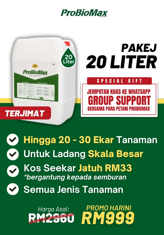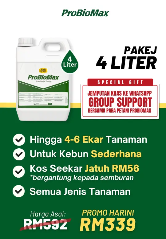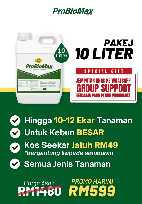 • ProBioMax: Memang dibuat untuk tanah & tanaman – akar, nutrien, pH, hasil, dan kawal penyakit.