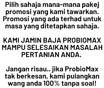 • ProBioMax: Kesan stabil 1 musim ke atas (jika tanah konsisten dirawat).