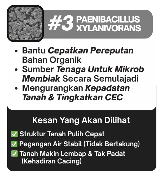 🧫 Paenibacillus xylanivorans – Mengurai lignin & selulosa, mempercepatkan pembentukan humus
