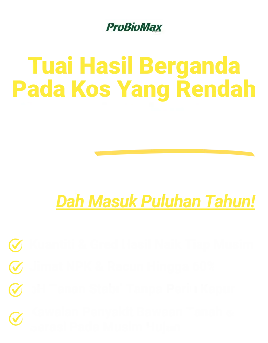 Jika matlamat tuan ialah tanah kembali subur, akar aktif, hasil stabil dan kos terkawal — ProBioMax memang sesuai.