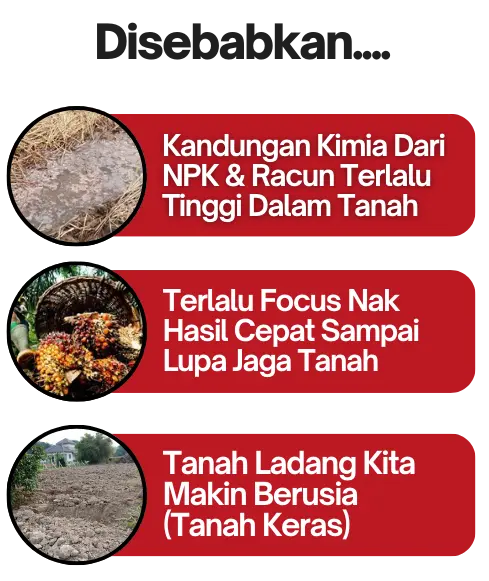 Sebab itu banyak kebun sawit, padi, durian dan sayuran melaporkan kurang masalah akar, batang & daun selepas beberapa minggu penggunaan.
