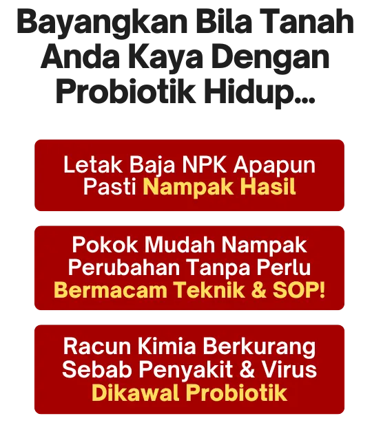 ProBioMax ialah Gabungan Probiotik Hidup + Asid Amino Gred Tinggi Yang Bertugas Memulihkan Ekosistem Tanah, Mengaktifkan Akar Dan Menjadikan Pengunaan NPK Lebih Berkesan & Dos NPK Berkurang Sehingga 60%